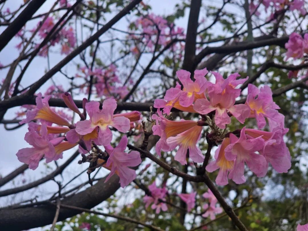 据先容,除了樱花,黄花风铃木以及云樱谷旁的紫花风铃木也已持续迎来花期,紫色的小花成团通达,成为虚幻主题大片的最佳布景。