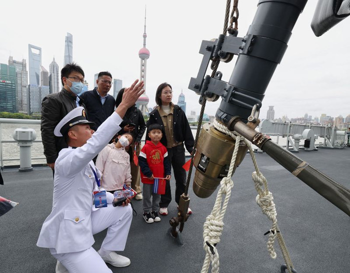 以“上海·海上”为主题的舰艇绽开活动4月21日在上海港外洋客运中心船埠启幕。舟师阜阳舰、舟师千岛湖舰吊挂满旗,招待各界世界登舰参不雅。这是该主题活动第三次与上海地标同框亮相,眩惑了多量市民前来参与。