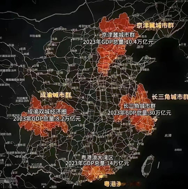 这6个城市群说完毕,试试,当前来看,长三角、珠三角,北京,还有成渝,这几个所在发展实力超强,武汉也紧随从后。