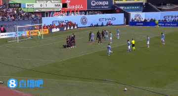 迈阿密遭扳平!第17分钟,梅尔考主罚任性球径直射门,皮球击中横梁下沿反弹得分,纽约城1-1迈阿密海外!↓