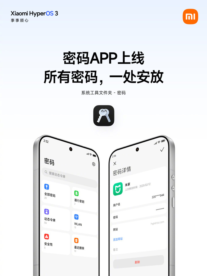 据IT之家本日早些时分报谈,小米澎湃OS官微还晓示推出密码App。据先容,小米密码App撑持初度登录自动捏取、存储密码,使用时不错一键填充,已登录的App也可手动添加。同期,在用户改造密码之后,系统撑持主动教唆,也不错自行在密码笃定中手动更新。