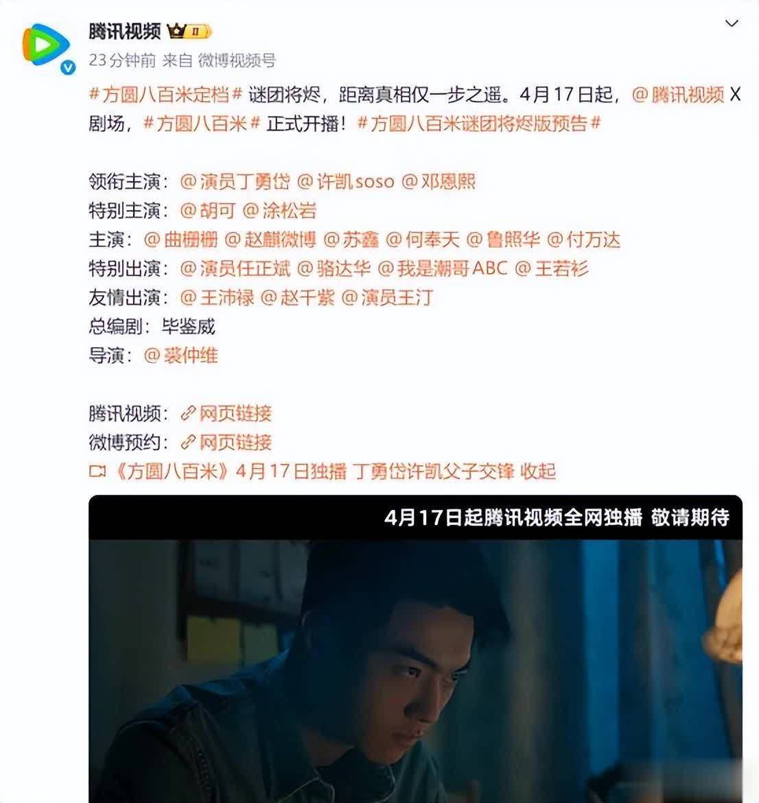 《方圆八百米》官宣定档,行将于鹅厂开播。