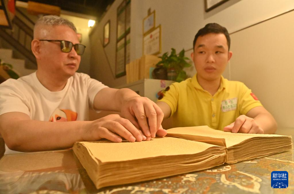 华体会体育app官网南宁市盲东说念主推拿行业工会蚁合会在这里开辟了念书角,盲东说念主竹素由南宁市藏书楼提供并不依期更新。 新华社记者 陆波岸 摄" />