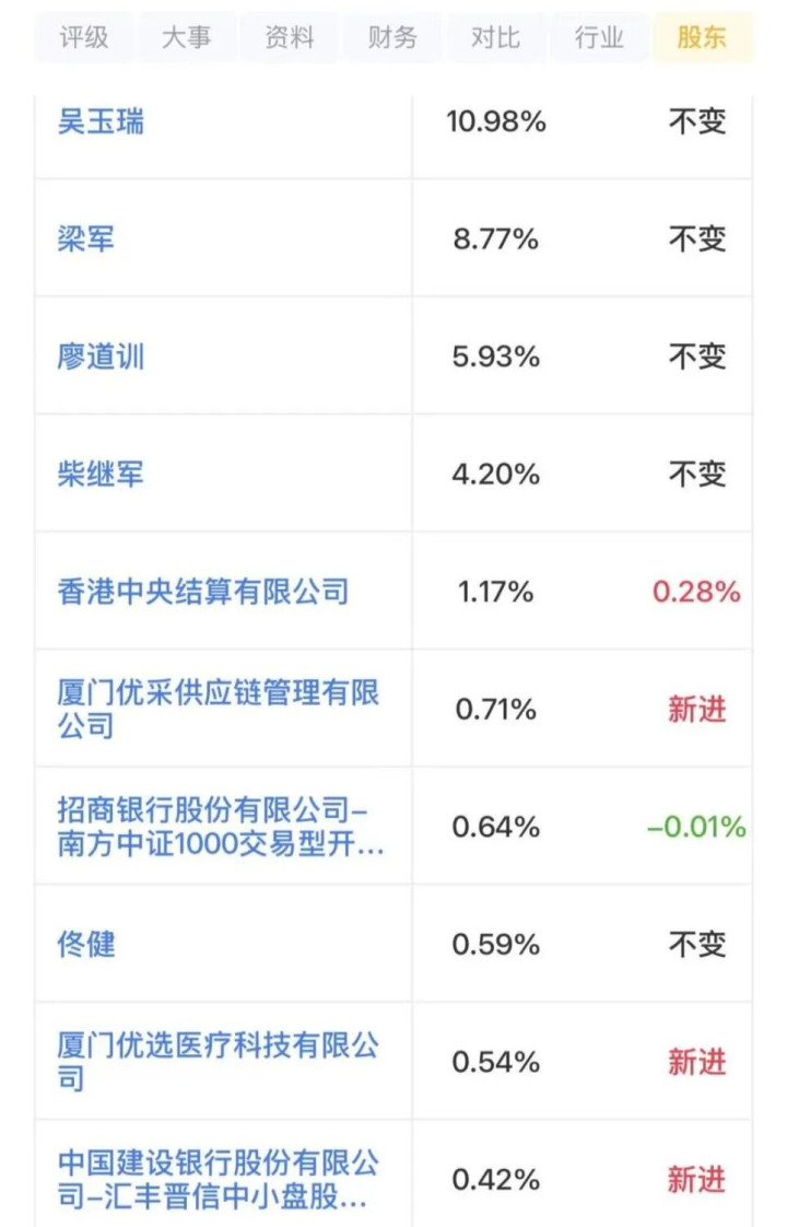 目下,廖说念训、吴玉瑞、柴继军3名一致行动东说念主整个持有公司14782.58万股股份,持股比例为21.1%,为公司实践截止东说念主。