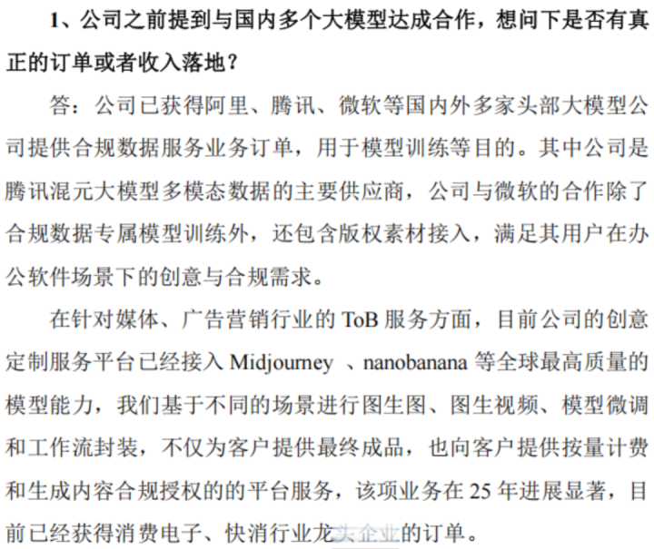 面对投资者式样的与国内多个大模子达成的配合是否有收入落地,公司也并未径直复兴。