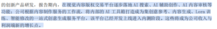 行为内容平台方的视觉中国(000681.SZ),天然手持海量版权,但也靠近着被AI本领重构以致取代的风险。