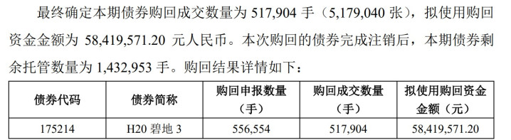 久期财经讯,3月27日,碧桂园地产集团有限公司(简称“碧桂园地产集团”)发布对于多只债券购回获配后果公告。