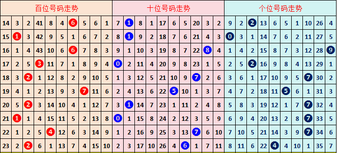 直选5码参考:百位(34579) 十位(01369) 个位(02478)