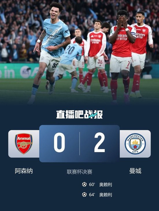 直播吧3月23日讯北京时辰3月23日凌晨0:30,英格兰联赛杯决赛,阿森纳在温布利球场迎战曼城。上半场特拉福德三连扑,哈弗茨失良机,阿森纳暂0-0曼城;下半场凯帕摘高空球出手,奥赖利头球破门,随后奥赖利接努内斯挑传头球再下一城,最终曼城2-0阿森纳,获得联赛杯冠军。