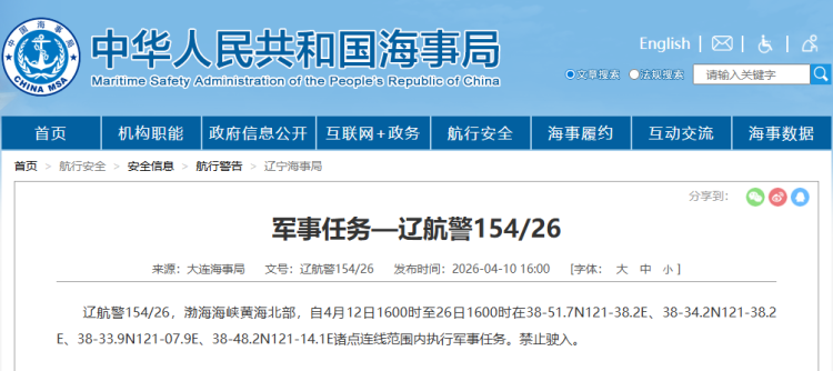 据中国海事局网站音书,大连海事局发布飘零教化,抢庄牛牛APP官网下载华体会体育app4月12日16时至26日16时,渤海海峡黄海北部部分海域边界内引申军事任务,拒绝驶入。
