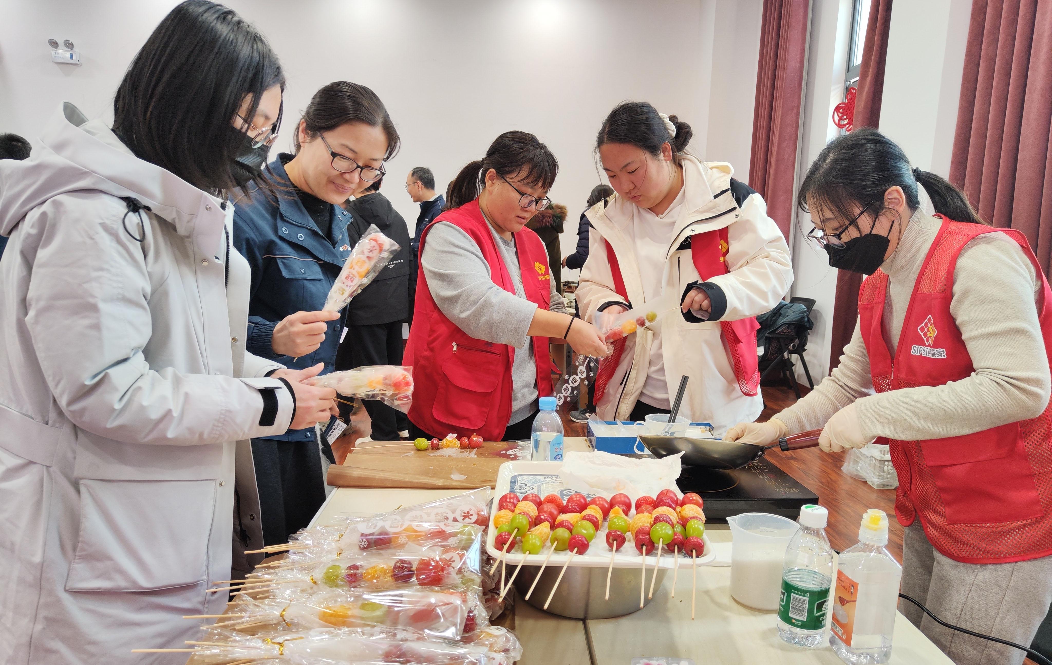 作为特邀非遗本领传承东说念主及专科好意思食师父,现场展示糖葫芦、海棠糕的制作秘籍。晶莹彻亮的糖浆裹着鲜红的山楂,华体会体育软糯香甜的海棠糕冒着氤氲热气,酸甜交汇的香气迷漫全场,瞬息叫醒东说念主们心底对传统年味的谦虚记挂。职工与社区住户不仅能回味到浮浅正统的传统小吃,更可在师父的精心指引下亲手参与制作,指尖翻飞间感受非遗文化的私有韵味与匠心传承。