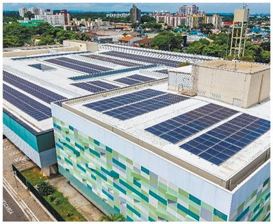 “病院送光明”式样为巴西圣保罗州保利尼亚病院屋顶安设的光伏系统。