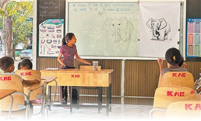 柬中免职工通过多媒体放映展示长城、熊猫等文化元素,让中国形象在孩子们心中日益生动鲜美起来。在福利院长大的空媞瑞现今是大四学生,她曾凭借一幅《苏州永庆寺》在绘制比赛中获奖。“从小和哥哥姐姐们一齐画长城,我但愿将来能去中国望望。”她说。